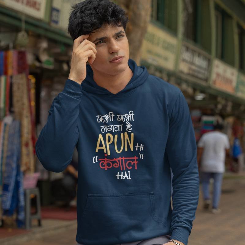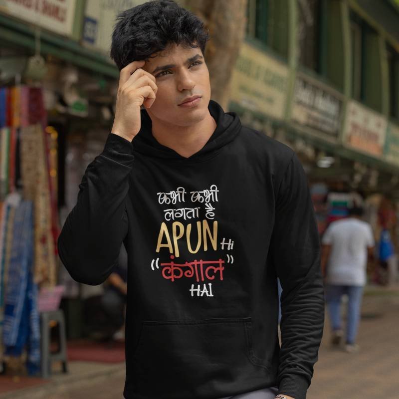 Kabhi Kabhi Lagta Hai Apun Hi Kangal hai Marathi Quotes Printed Hoodies
