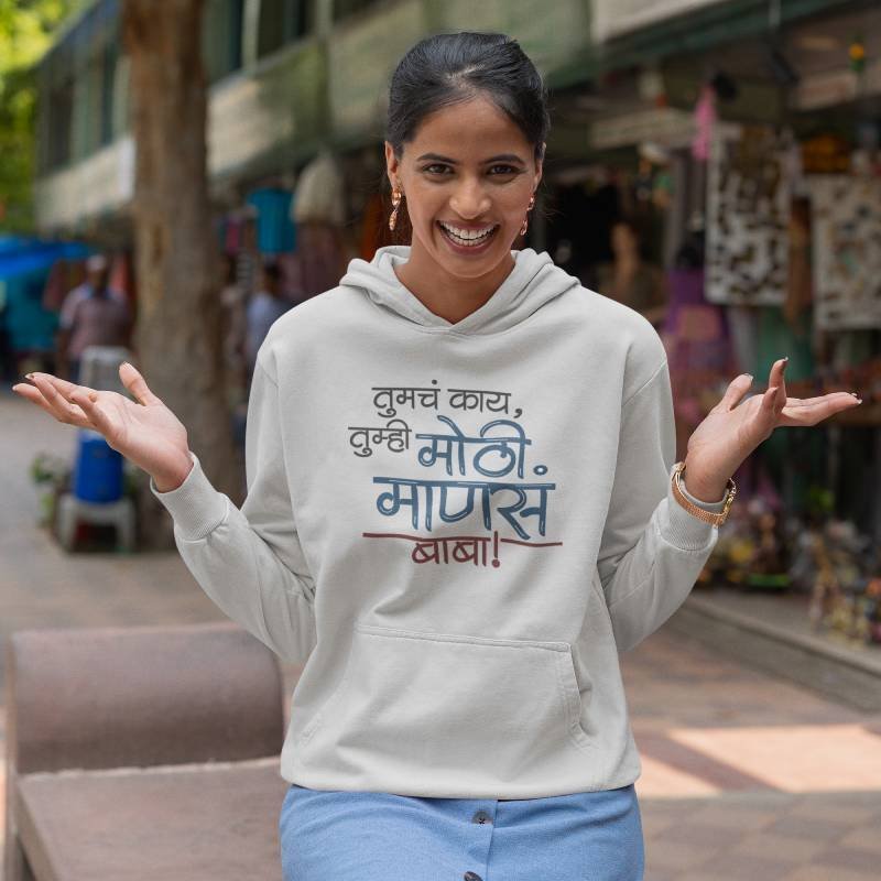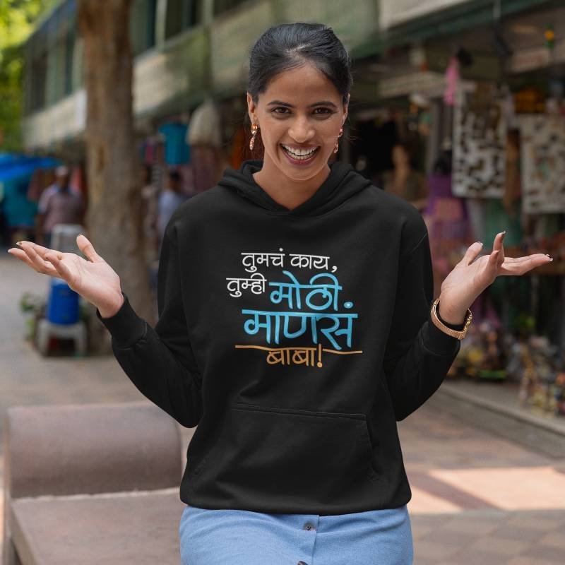 Tumch Kay Tumhi Mothi Manas Baba! Marathi Quotes Printed Hoodies