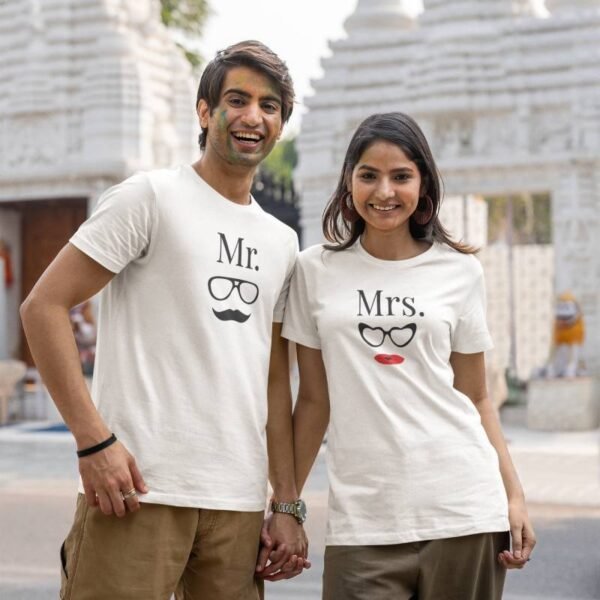 Celebrate your bond in the most stylish way with our Mr. and Mrs. Couple Quotes Printed T-Shirts — the perfect expression of love, unity, and forever. Featuring matching “Mr.” and “Mrs.” quote prints, these tees are made for couples who wear their titles proudly and love to match in both heart and outfit.