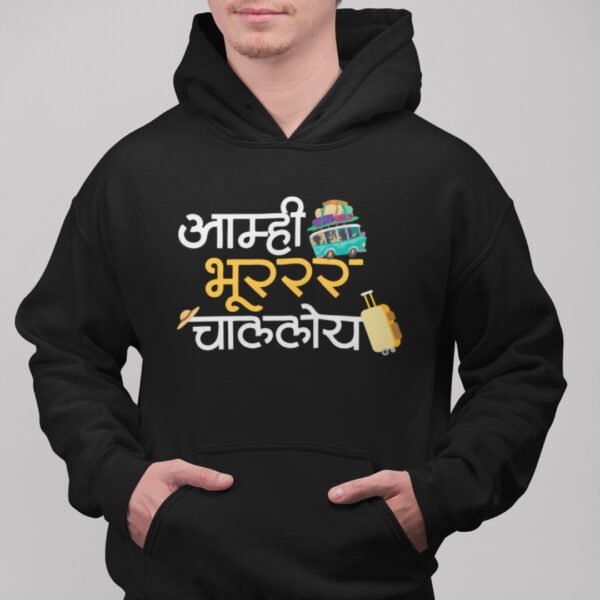 The “Amhi Bhurr Chalaloy Marathi Quotes Printed Hoodie” is a fun and comfortable hoodie that brings a popular Marathi quote to life. Made with soft, high-quality fabric, this hoodie offers both warmth and style, making it perfect for cooler days or casual outings. Whether you’re strolling through the city or simply relaxing, the playful Marathi phrase “Sod Udya Baghu” adds a touch of humour and cultural pride to your look. Ideal for anyone who loves Marathi sayings or enjoys wearing statement pieces, this hoodie is a must-have for expressing your Marathi identity with flair.