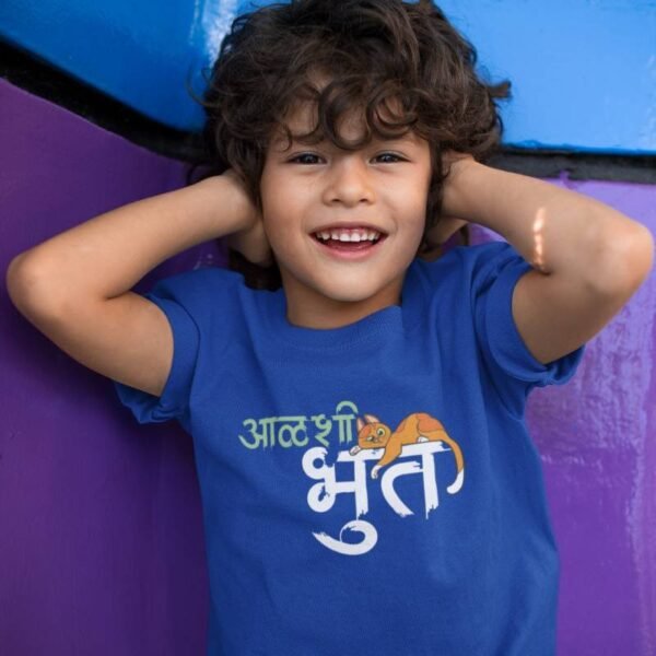 Let your little one show off their funny side with our “Aalshi Bhoot (आळशी भूत)” kids’ T-shirt! Made with soft, breathable cotton tshirt, this T-shirt combines comfort with desi humor. Perfect for those lazy mornings or nap-loving kiddos, this quirky Marathi quote will make everyone smile. Great for casual outings, playdates, or just lounging at home — because even little ghosts need rest!