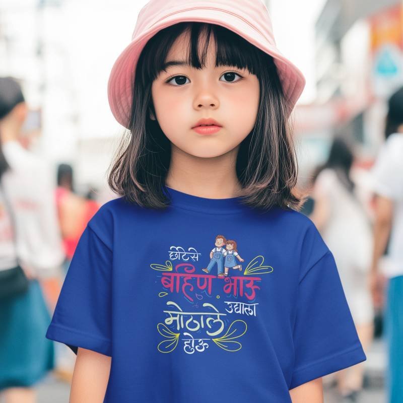 Whether it’s for Raksha Bandhan t-shirt, a birthday t-shirt, or just a cute everyday outfit, this Marathi printed T-shirt is designed to bring smiles and sibling vibes wherever your kids go. Available in a variety of sizes and colors, it’s a must-have in every Maharashtrian family’s wardrobe.