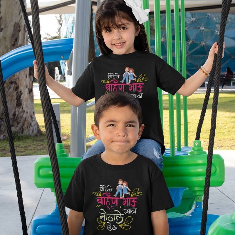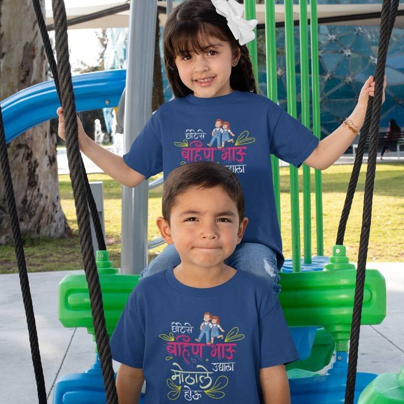 Whether it’s for Raksha Bandhan t-shirt, a birthday t-shirt, or just a cute everyday outfit, this Marathi printed T-shirt is designed to bring smiles and sibling vibes wherever your kids go. Available in a variety of sizes and colors, it’s a must-have in every Maharashtrian family’s wardrobe.