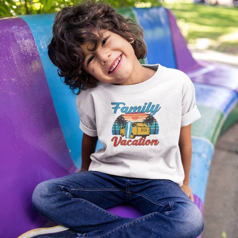 The “Family Vacation Vacation Quotes Printed Kids T-shirt” is a playful and stylish shirt that celebrates the joy of family adventures. Featuring a fun vacation-inspired quote, this t-shirt is perfect for family vacations, weekend getaways, or everyday wear. Crafted with soft, breathable fabric, it ensures comfort during travel and play. Whether you’re hitting the beach, exploring new cities, or enjoying a cozy staycation, this tee is a Great reminder of the special memories made with loved ones. A must-have for any young traveler!
