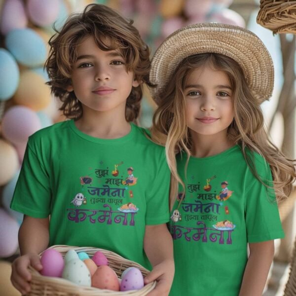 Made with soft, breathable cotton, this unisex T-shirt is designed for comfort and durability — ideal for active kids. Whether it’s for Raksha Bandhan, a family photoshoot, or just everyday fun, this cotton T-shirt for kids adds a touch of Marathi culture and lots of sibling vibes!