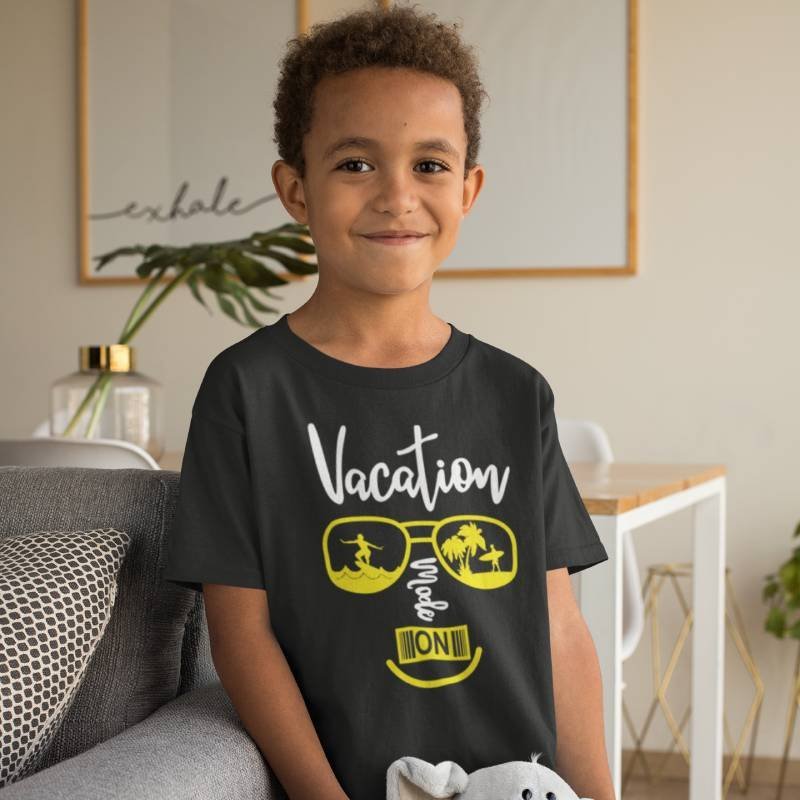 The “Vacation Mode On Vacation Quotes Printed Kids T-shirt” is designed for little adventurers who love to travel and explore. Featuring a fun and playful vacation quote, this tee is perfect for vacations, beach days, or just relaxing at home. Made with soft and comfortable fabric, it’s a great choice for young travelers who want to embrace the vacation spirit in style. Whether on a family trip or enjoying downtime, this t-shirt helps set the mood for fun and relaxation. Ideal for kids who are always ready to switch into vacation mode!