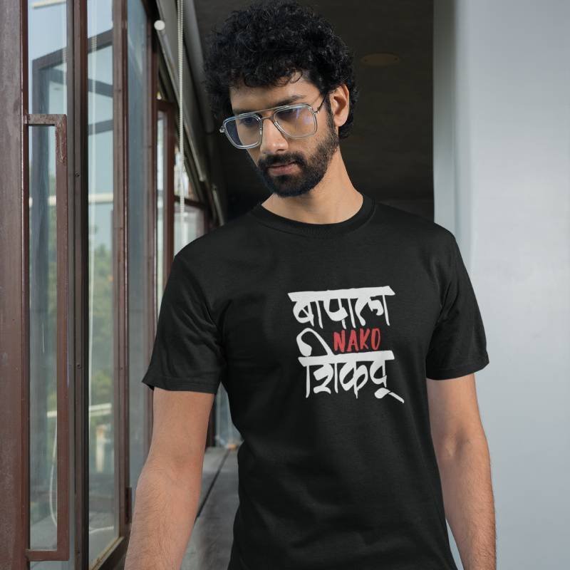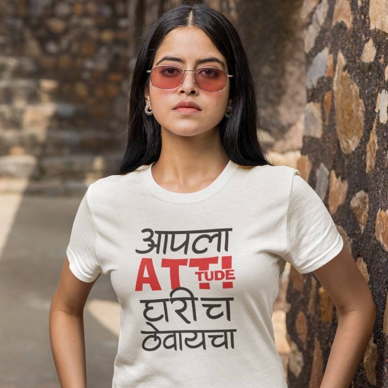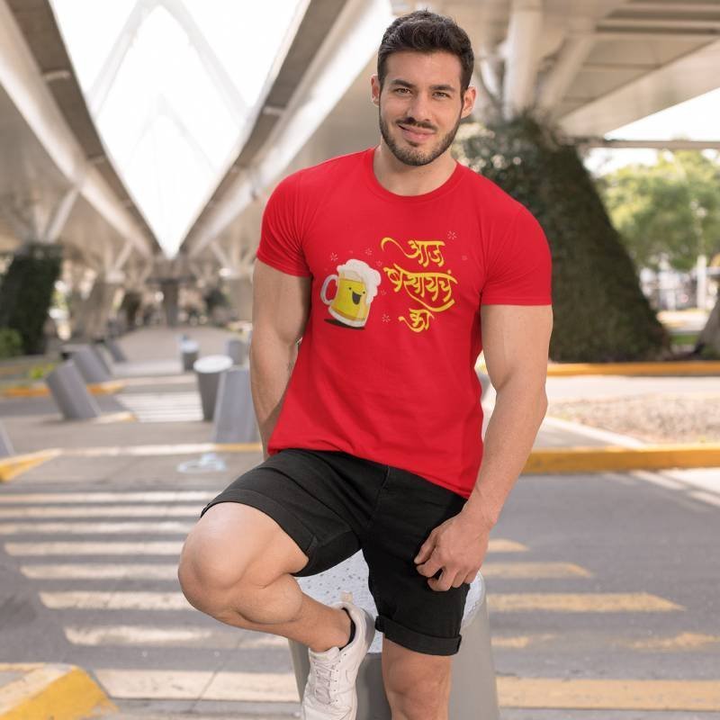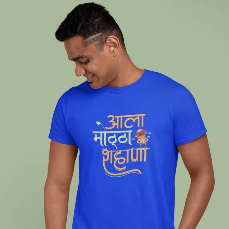 The A Ratalya (रताळ्या) Marathi Quotes Printed T-shirt is a bold statement piece for anyone proud of their Marathi heritage. This Marathi graphic tee features an exclusive quote in Marathi, designed to capture attention and showcase cultural pride. Made from high-quality materials, this comfortable T-shirt is perfect for everyday wear, blending style and meaning effortlessly. Ideal for adding a unique touch to your casual wardrobe, the A Ratalya T-shirt is a must-have for those who appreciate distinctive, regional designs.