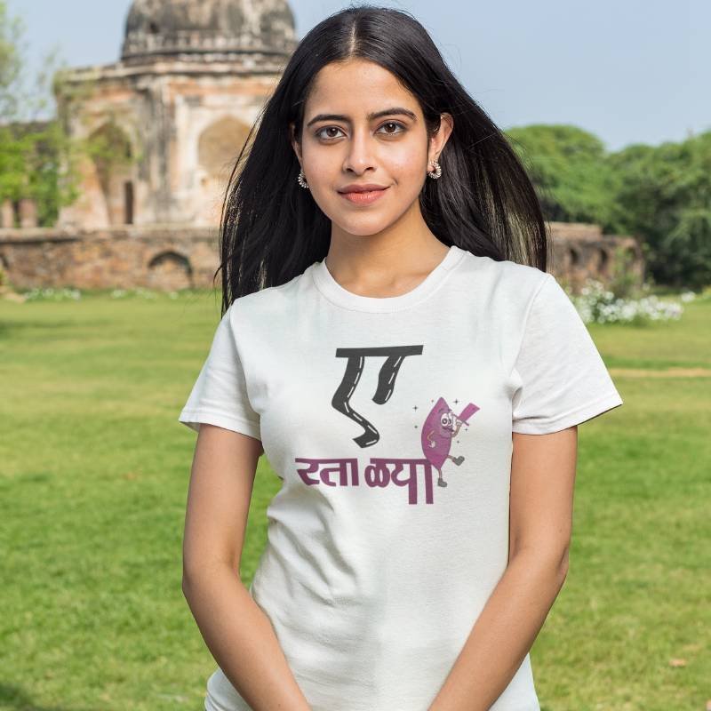 A Ratalya (रताळ्या) Marathi Quotes Printed T-shirt | Unisex Marathi T-shirt | Marathi quotes printed T-shirt | Comfortable Marathi tee | Marathi graphic T-shirt | Marathi pride clothing | Unique Marathi apparel | Casual Marathi wear | Marathi fashion T-shirt | High-quality Marathi quotes tee