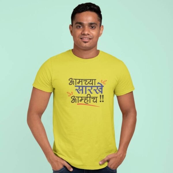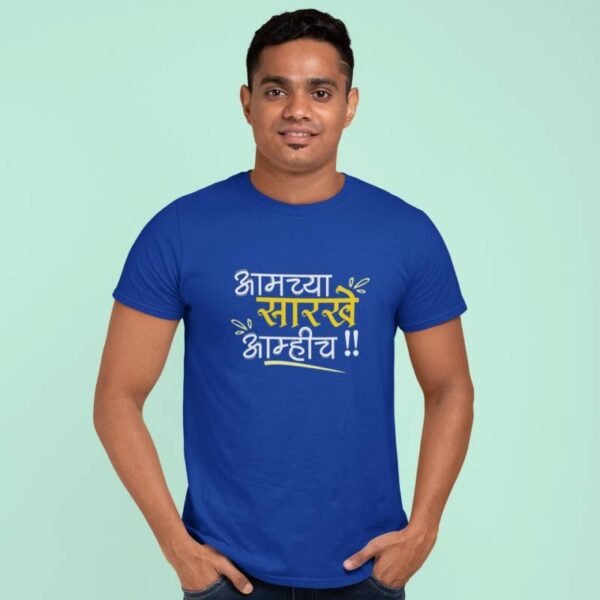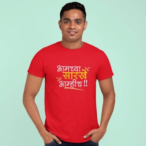 Pair it with jeans, joggers, or shorts – the high-quality print and relaxed fit make it a versatile addition to every wardrobe. Because when it comes to attitude and identity, there’s only one thing to say – “Aamchya Sarkhe Aamhich!”