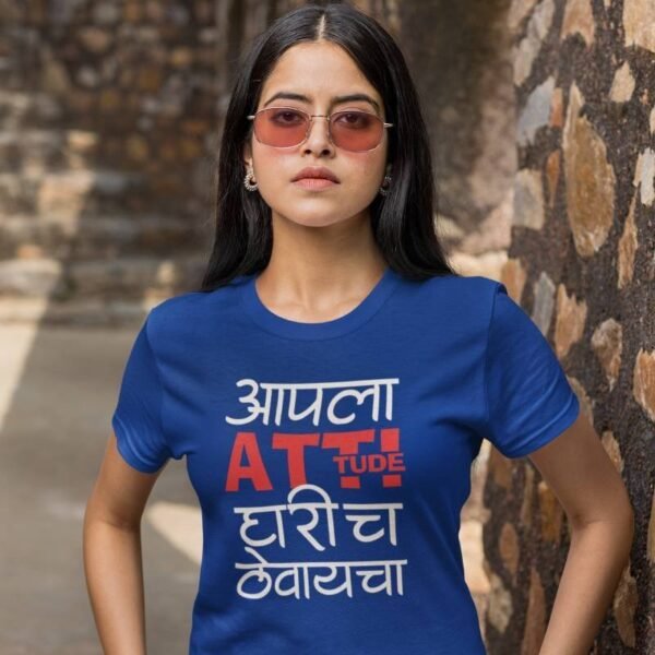The “Aapla Attitude Gharich Thevaicha Marathi Quotes T-Shirt” is designed for those who live life with pride and unapologetic attitude. Featuring the powerful phrase “Aapla Attitude Gharich Thevaicha,” this t-shirt speaks volumes about embracing one’s self-worth and individuality in true Marathi style. Made with premium-quality fabric for comfort and durability, this tee is ideal for casual outings, gatherings, or simply making a statement. It’s more than a t-shirt—it’s a reflection of your Marathi spirit and confidence. Show off your attitude and wear your aukat with pride!
