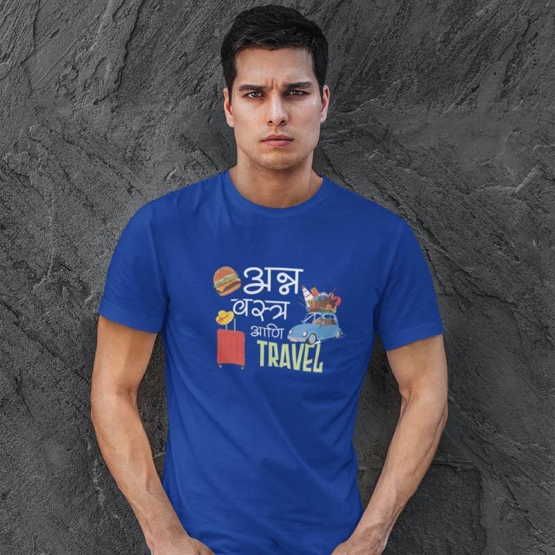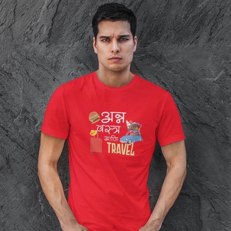 Anna Vastra ani Travel T-shirt | Unisex Marathi T-shirt | Marathi quotes t-shirts for men and women | Food and travel Marathi shirt | Marathi pride apparel | High-quality Marathi tee | Marathi travel Tshirt