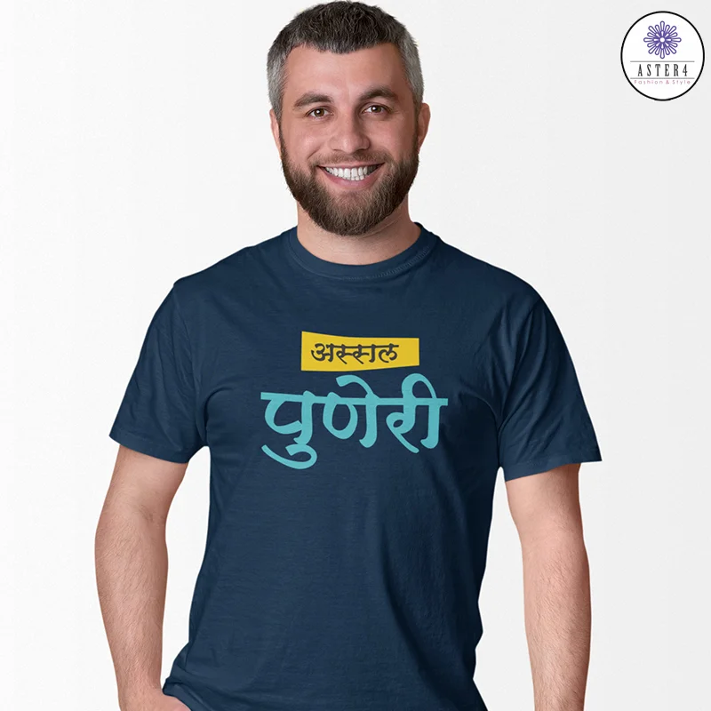 Show off your true Puneri spirit with the “Assal Puneri” Marathi Quotes Printed T-shirt. This bold and stylish t-shirt proudly embraces the essence of Pune and its unique culture. “Assal Puneri” translates to “True Puneri,” and it’s perfect for anyone who takes pride in their Puneri identity. Whether you’re a native of Pune or simply someone who admires its rich heritage, this tee celebrates the local flavor, wit, and lifestyle of Pune. Made from soft, comfortable fabric, it’s perfect for everyday wear and for expressing your cultural pride with style. Wear it loud and proud—because being Puneri is not just a place, it’s an attitude!