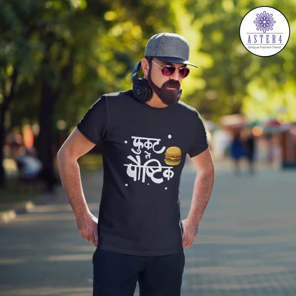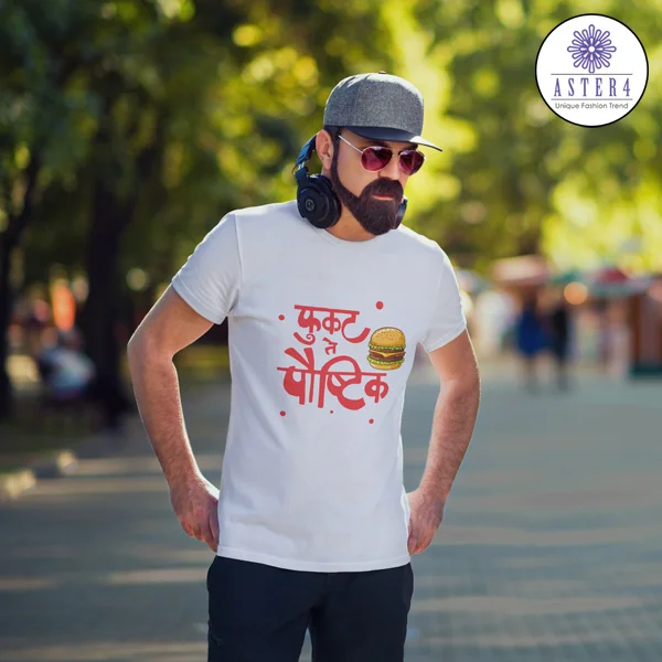 Fukat te Paushtik (पौष्टिक) Marathi (मराठी) Quotes Printed Tshirt | Unisex Marathi T-shirt | Marathi quotes printed T-shirt for Men and Women | Comfortable Marathi tee | Marathi graphic T-shirt | High-quality Marathi quotes T-shirt