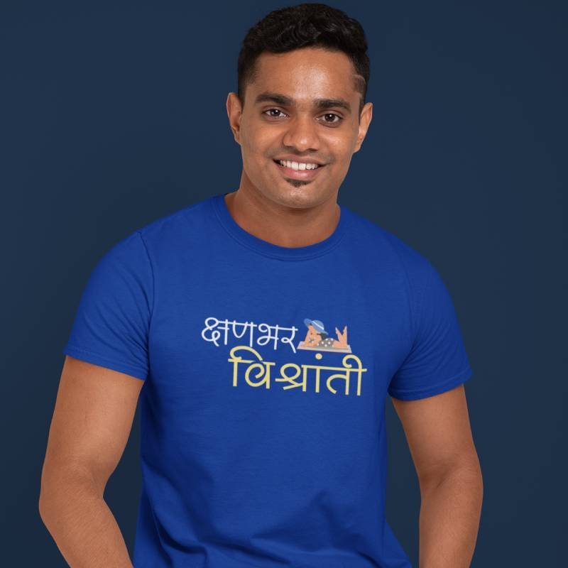 Kshanbhar Vishranti T-shirt | Marathi quote printed T-shirt | Marathi printed T-shirt for men and Women | Take a break T-shirt | Unisex Marathi graphic tee | Marathi Travel Tshirt