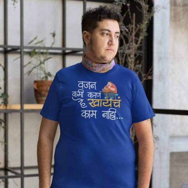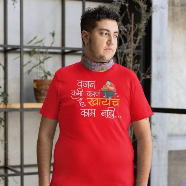 “ For those who love to laugh while staying motivated, the “Vajan Kami Karne He Khaycha Kaam Nahi” Marathi Quotes Printed T-shirt for Men and Women is the perfect fit! Featuring a humorous yet thought-provoking Marathi phrase, this t-shirt adds a lighthearted twist to the idea of staying healthy. Whether you’re into fitness, dieting, or simply enjoying a funny take on life, this tee will get a few chuckles while showing your love for Marathi culture. Made from soft, breathable fabric, it offers both comfort and style for everyday wear. Wear this unique t-shirt and remind everyone that sometimes, humor is the best way to stay motivated!”