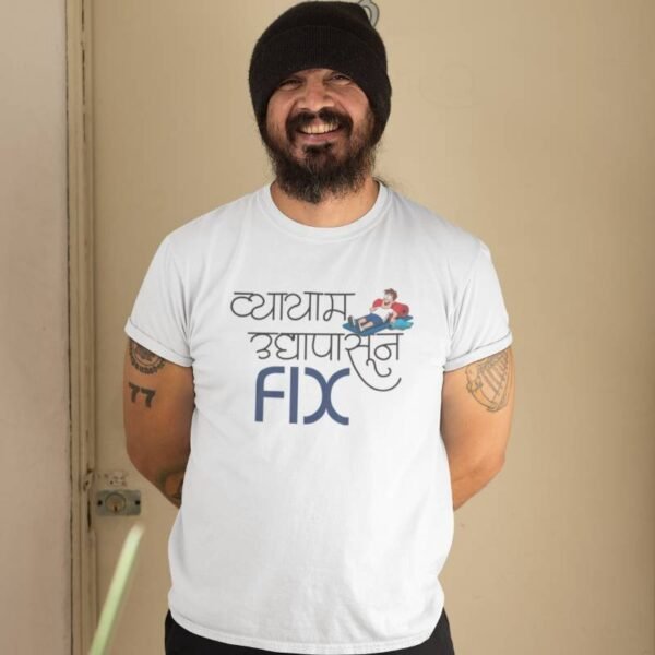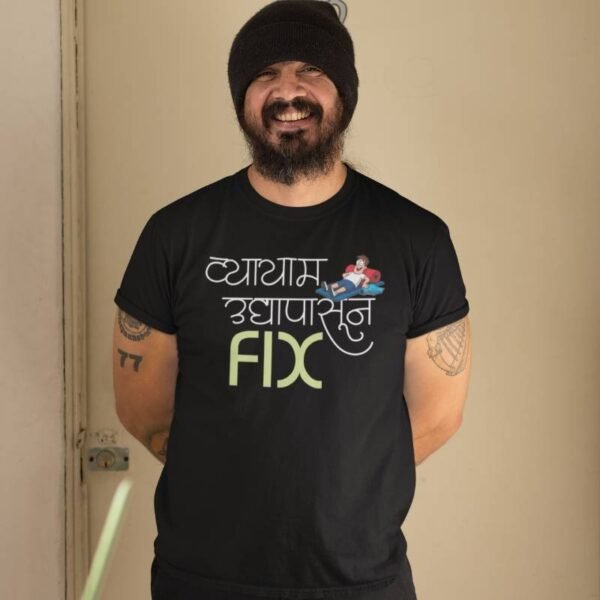 Vyayam Udyapasun Fix Marathi Quotes Printed Tshirt | Unisex Marathi T-shirt | Marathi quotes printed T-shirt | Comfortable Marathi tee | Marathi graphic T-shirt | Marathi pride clothing | Unique Marathi apparel | Casual Marathi wear | Marathi fashion T-shirt | High-quality Marathi quotes tee