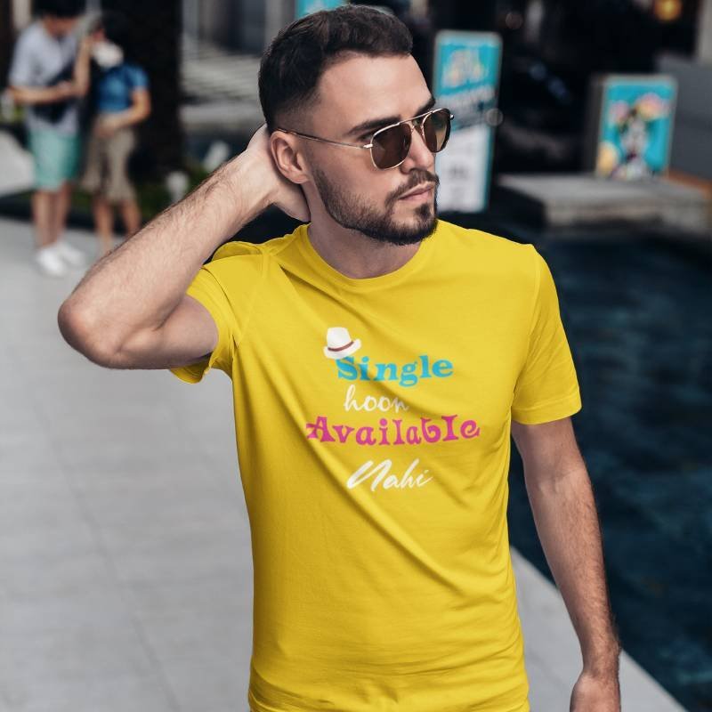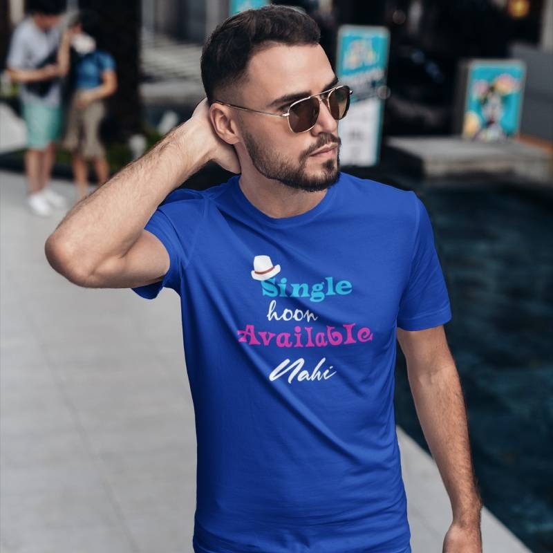 Show off your single status with the Single Hu Available Nahi Unisex Printed T-shirt. This bold and humorous graphic T-shirt features a witty quote that perfectly expresses the fun side of being single and independent. Whether you’re enjoying your freedom, making a statement with friends, or just embracing a carefree attitude, this shirt adds a playful touch to your wardrobe. Made from soft, breathable fabric, it’s perfect for casual outings, relaxed hangouts, or lazy days. The unisex fit makes it a versatile and fun addition to any closet, and it’s a great gift for anyone who’s proudly rocking their single life with humour and style!